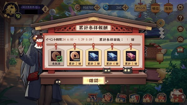 5日間限定のログインボーナスが配布されます。1日でも逃すと一番貴重な5日目のアイテムが貰えませんので、期間中は必ず毎日ログインしましょう!なお、11日の切り替わりは午前6時00分となっています。