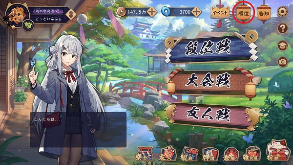 雀魂のランキングはメイン画面の「順位」から確認することができます。