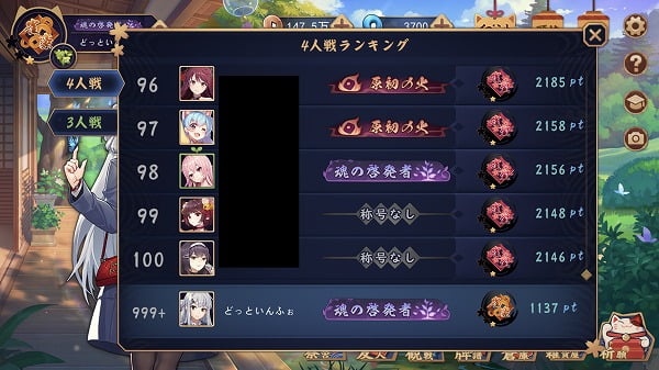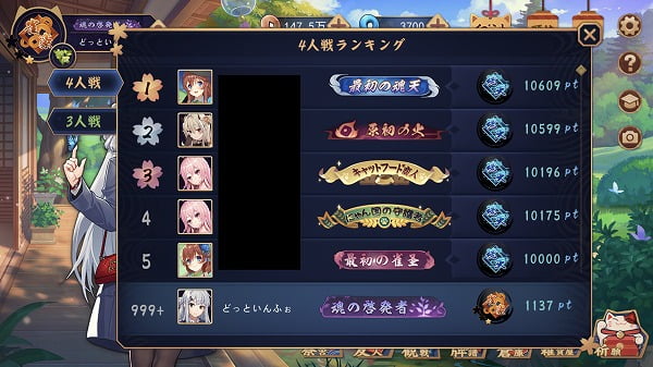 ゲーム内「4人戦ランキング」上位100名様のみが参加できる、