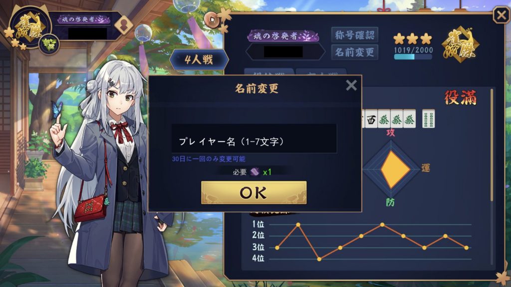 雀魂でプレイヤー名を変更する方法は?課金が必要だけどやり方はとっても簡単です雀魂(じゃんたま)をプレイしていて、自分のプレイヤー名を変えたいと思ったことはありませんか? 本記事では雀魂でのプレイヤー名の変更方法を解説します。 プレイヤー名変更の流れ プレイヤー名を変更するまでの流れは、次の3ステップです。 1.500輝石...