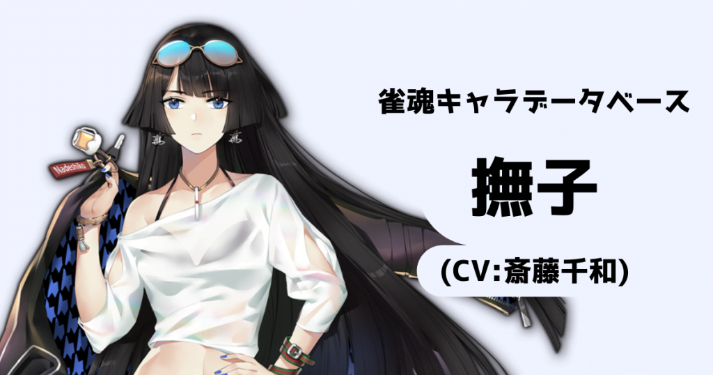 オンライン麻雀ゲーム『雀魂(じゃんたま)』の雀士キャラクター「撫子(CV:斎藤千和)」についてのデータをまとめたページです。 撫子の基本情報 名前撫子なまえなでしこCV斎藤千和キャラ説明「これが頂点に君臨する牌捌きってヤツだよ!」母親を幼い頃に... -