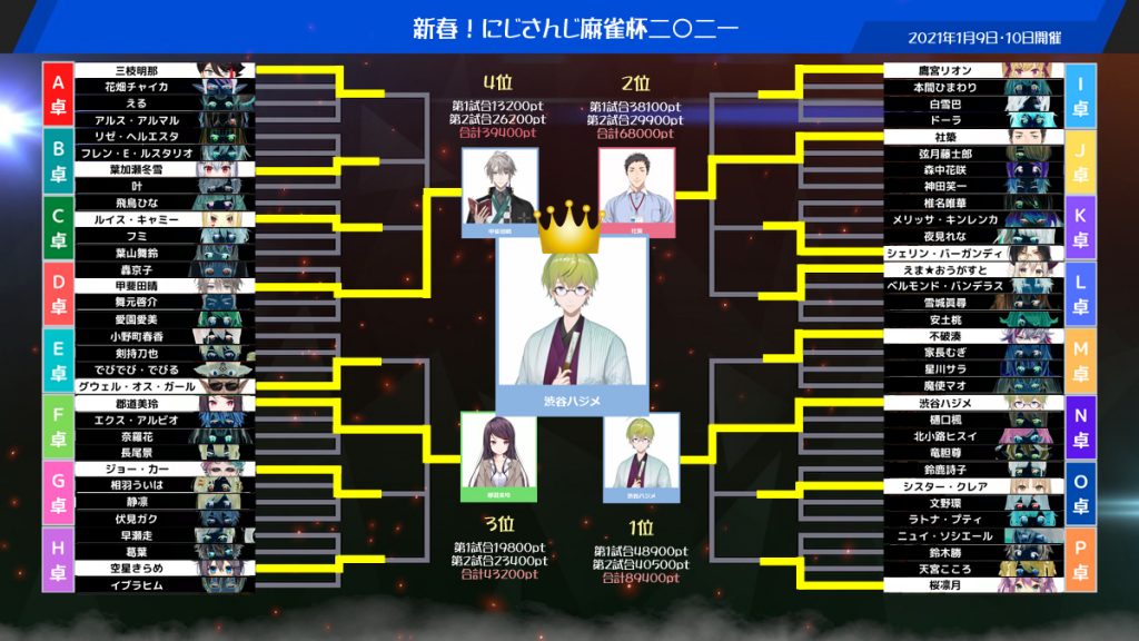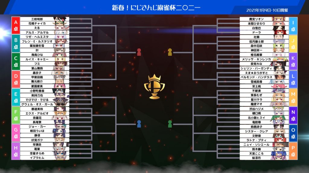【にじさんじ麻雀杯 二〇二一】大会ルールとトーナメント表まとめ