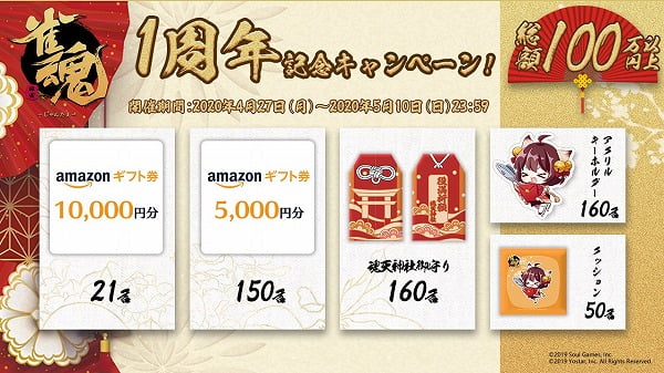 雀魂公式Twitterアカウントをフォロー&RTで総額100万円以上の商品が抽選で当たる!雀魂1周年記念キャンペーンが開催中!